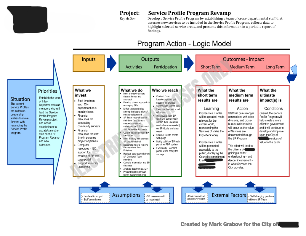 This project provided a comprehensive analysis and redesign proposal for a municipality's long-standing Service Profile Program (SPP), which had been paused due to staff and sub-committee dissatisfaction. The SPP was essentially the City's term for an Organizational Performance Management (OPM) program. The City used the neutral language of "Service Profile" because the term "performance" carried a negative connotation among staff. The goal was to revamp the SPP to fit the organization's unique culture, which favored using the program for "storytelling" rather than performance measurement. As the short-term project manager hired by the City, my goal was to define a strategy for rebranding the program to focus on "storytelling" and communication (Pillar 1), which would create a solid, non-threatening foundation before the organization gradually adopted true Performance Measurement (Pillar 2) and Performance Management (Pillar 3) practices. The resulting proposal laid out a "3-Pillar" approach to create a solid foundation for public communication while allowing the program to mature into a formal performance management system over time.